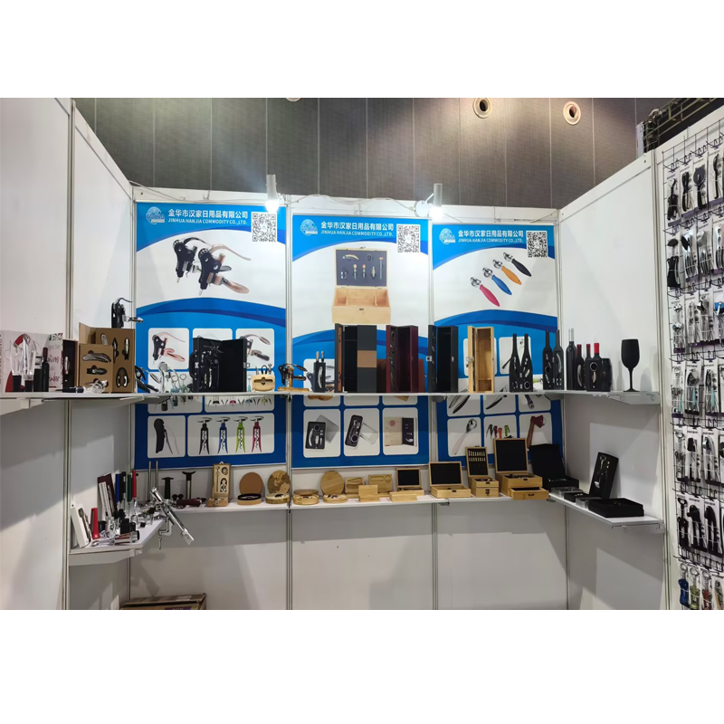 Η Jinhua Hanjia Commodity Co., Ltd., που βρίσκεται στην ίδια διοικητική περιοχή με τον εκθεσιακό χώρο και σε απόσταση μίας ώρας με το αυτοκίνητο από το Yiwu Small Commodities City, απολαμβάνει εγγενή πλεονεκτήματα της περιφερειακής οικονομικής αλυσίδας παραγωγής. Αξιοποιώντας το ακμάζον διεθνές επιχειρηματικό περιβάλλον ηλεκτρονικού εμπορίου της Yiwu, η εταιρεία μας έχει επιλέξει επτά κατάλληλες σειρές προϊόντων για εγχώριες εταιρείες εμπορευμάτων και εκατοντάδες είδη επιχειρηματίες.Αυτά τα προϊόντα περιλαμβάνουν είδη σπιτιού και κουζίνας, αξεσουάρ κρασιού, όπως τιρμπουσόν κρασιού από ανοξείδωτο ατσάλι και κράμα, πώματα κρασιού, εργαλεία σαμπάνιας, πρέσες σκόρδου, κράκερ ξηρών καρπών, ανοιχτήρια κονσερβών, αποφλοιωτές, τρυφερά κρεάτων, σέικερ κοκτέιλ, φιάλη από ανοξείδωτο ατσάλι, σετ από ξύλο hip-flask, κιβώτια κρασιού και PU, κιβώτια κρασιού.