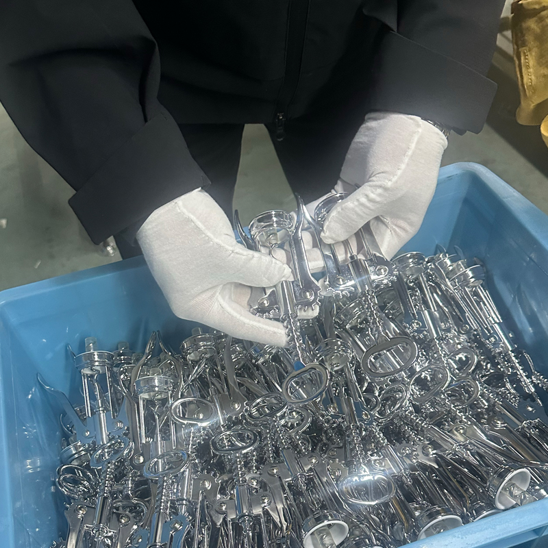 Οι επικαλύψεις σε όλα τα εξαρτήματα του τιρμπουσόν χρησιμοποιούν συνήθως μεθόδους ηλεκτρολυτικής ή βαφής, για αυτήν την απεικόνιση, θα επικεντρωθούμε στην ηλεκτρολυτική επιμετάλλωση. χρόνια εμπειρίας στον κλάδο, διασφαλίζοντας τη σταθερότητα του προϊόντος. Αυτό διασφαλίζει επίσης ότι διάφορα ζητήματα παραγωγής που αντιμετωπίζονται κατά την κατασκευή μπορούν να αντιμετωπιστούν γρήγορα, επαγγελματικά και αποτελεσματικά. Αυτές οι ρυθμίσεις βοηθούν στη διασφάλιση των κύκλων παραγωγής για είδη όπως αξεσουάρ κρασιού, μαγειρικά σκεύη και τιρμπουσόν, ενώ υποστηρίζουν επίσης τα σχέδια πωλήσεων των πελατών.
