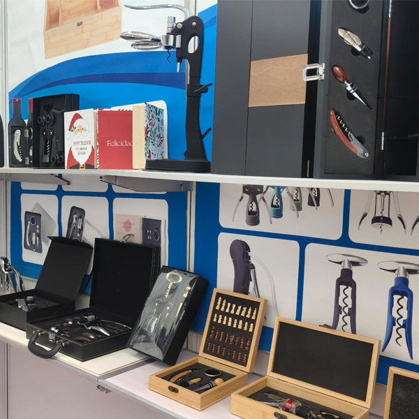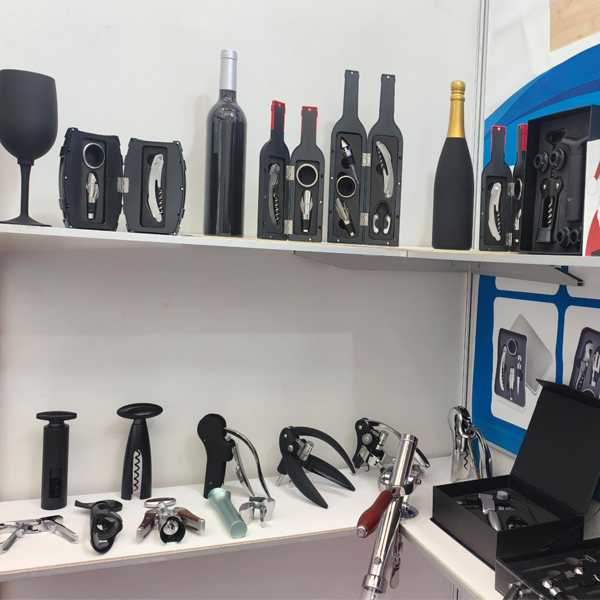 Η γκάμα των προϊόντων μας περιλαμβάνει μια ποικιλία από ανοξείδωτα και κράματα ανοιχτήρι κρασιού, τιρμπουσόν, εργαλεία σαμπάνιας, πρέσες σκόρδου, κροτίδες ξηρών καρπών, ανοιχτήρια κονσερβών, αποφλοιωτές, τρυφερά κρέατος, σέικερ κοκτέιλ, φιάλη από ανοξείδωτο χάλυβα και διάφορα σετ κρασιού από ξύλο ή PU, καθώς και κουτιά κρασιού.