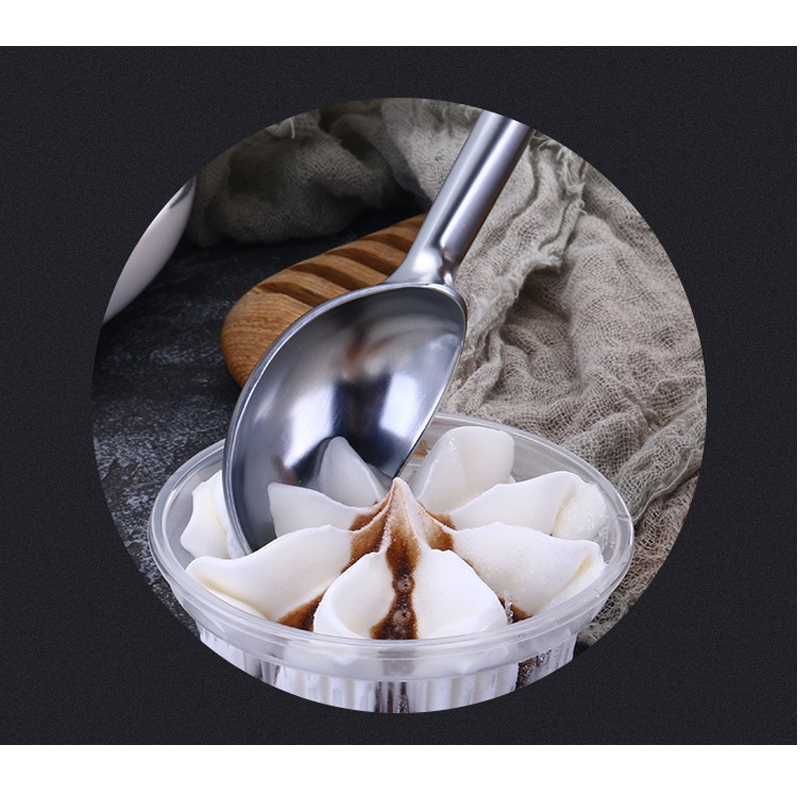 Αυτή η σέσουλα παγωτού από κράμα ψευδάργυρου με άνετη λαβή, κατασκευασμένη από κράμα ψευδάργυρου υψηλής ποιότητας μέσω χύτευσης χωρίς ραφή, η σέσουλα διαθέτει ομαλά περιγραμμένα άκρα χωρίς αιχμηρές γωνίες, εξασφαλίζοντας μια άνετη, στρογγυλεμένη εμπειρία λαβής. Παρά τα 16,5 cm μήκος της, η σέσουλα ζυγίζει μόνο 6-75 γραμμάρια. διαδικασία. Η επιφάνεια είναι επικαλυμμένη με φινίρισμα ψημένου σε υψηλή θερμοκρασία (120°C), δημιουργώντας μια ανθεκτική αλλά ελαφριά δομή. επιφάνεια που επιτρέπει την απελευθέρωση παγωτού χωρίς ραφές. Αυτός ο προσεγμένος σχεδιασμός εξασφαλίζει αβίαστη χρήση για οποιονδήποτε, ανεξάρτητα από το επίπεδο δεξιοτήτων.